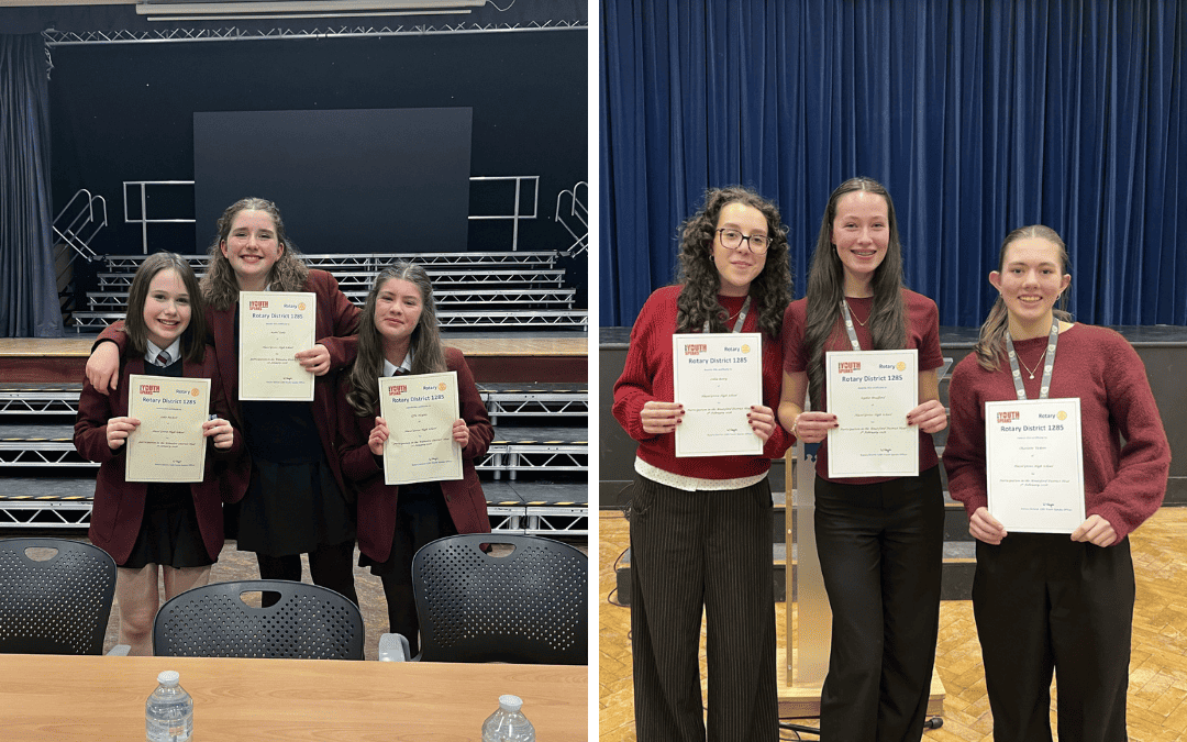Youth Speaks is one of Rotary’s most established programmes, offering young people the chance to develop public speaking, teamwork and leadership skills by presenting on a topic of their choice. This year’s competition saw 43 schools enter 90 teams across District 1285, giving students from across the North West a platform to speak about the issues that matter most to them. The first stage of the competition involved 11 District Heats.