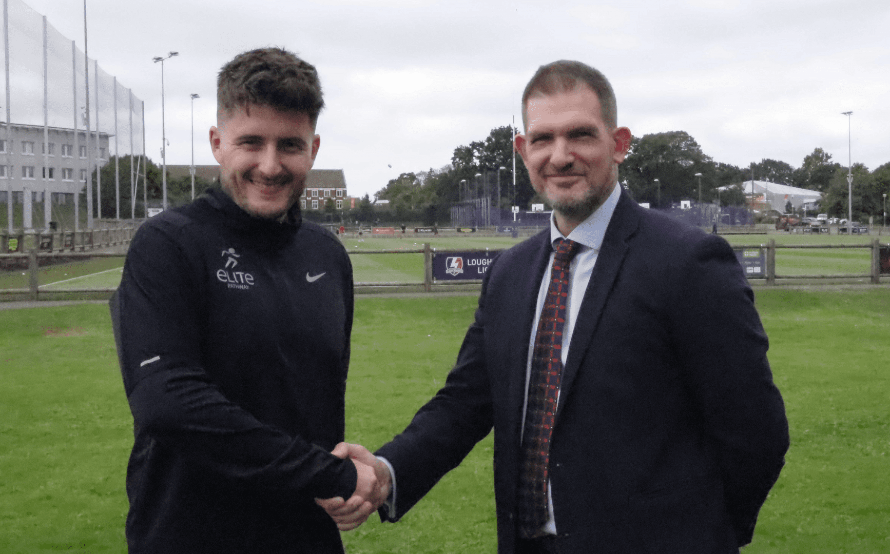 (Left to right) The Laurus Trust’s Ed Haslam and Dr Ash Casey of Loughborough University shake hands to seal the ELITE Pathway partnership.
