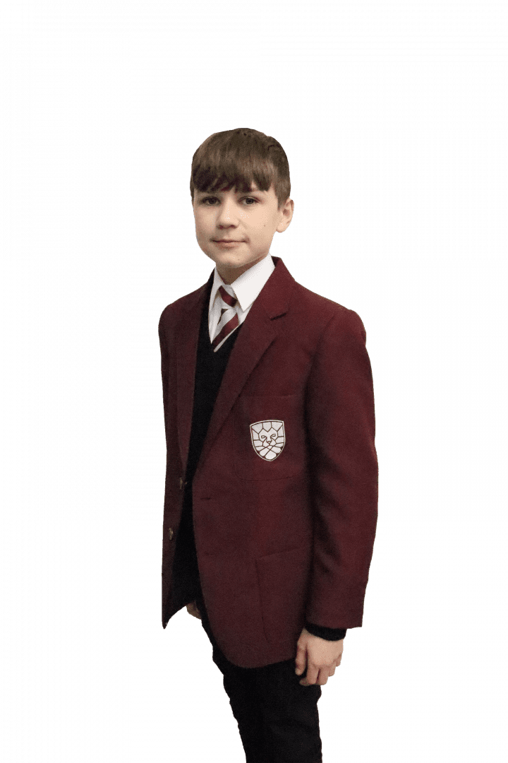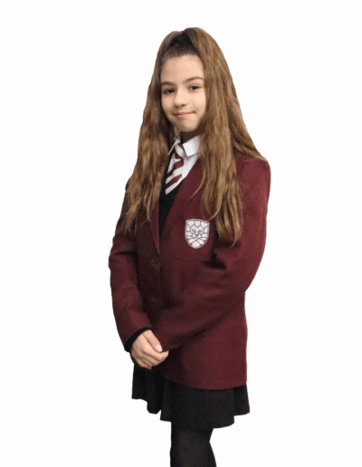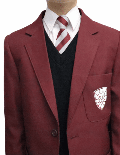 - Blazer – Maroon, single-breasted blazer with the school badge.
