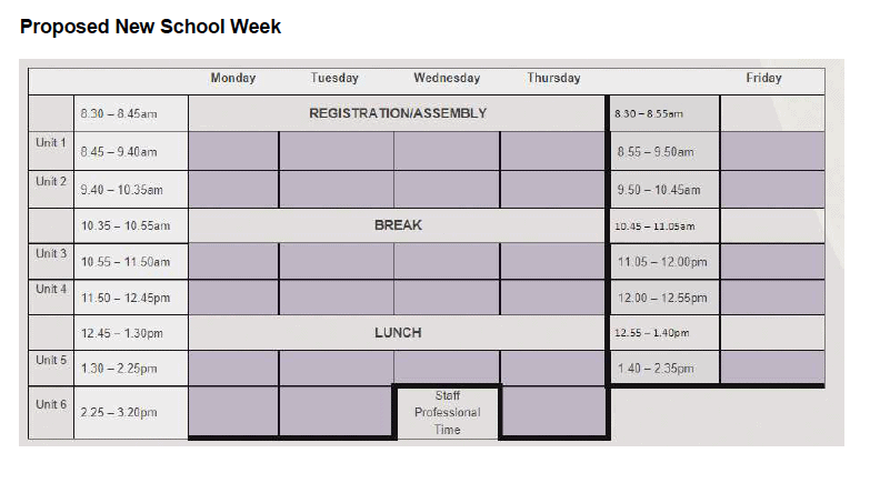 • There would be six 55-minute lessons on 3 days per week. This would mean that the school day extends slightly and finishes at 15:20pm on those days.